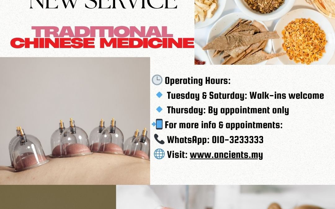 We are excited to announce the launch of Traditional Chinese Medicine (TCM) services at